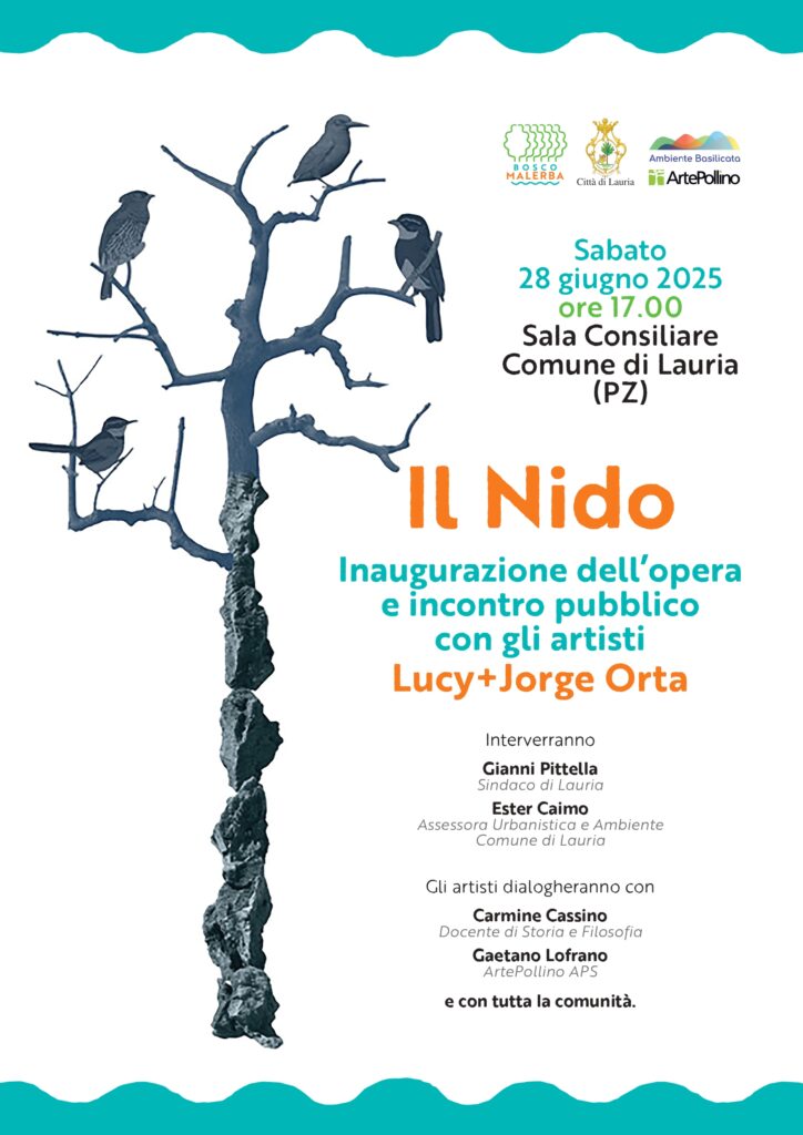 Gli artisti di fama internazionale Lucy + Jorge Orta tornano in Basilicata con un nuovo progetto artistico, Il Nido, che sarà presentato sabato 28 giugno 2025 alle ore 17.00 presso la Sala consiliare della Città di Lauria.