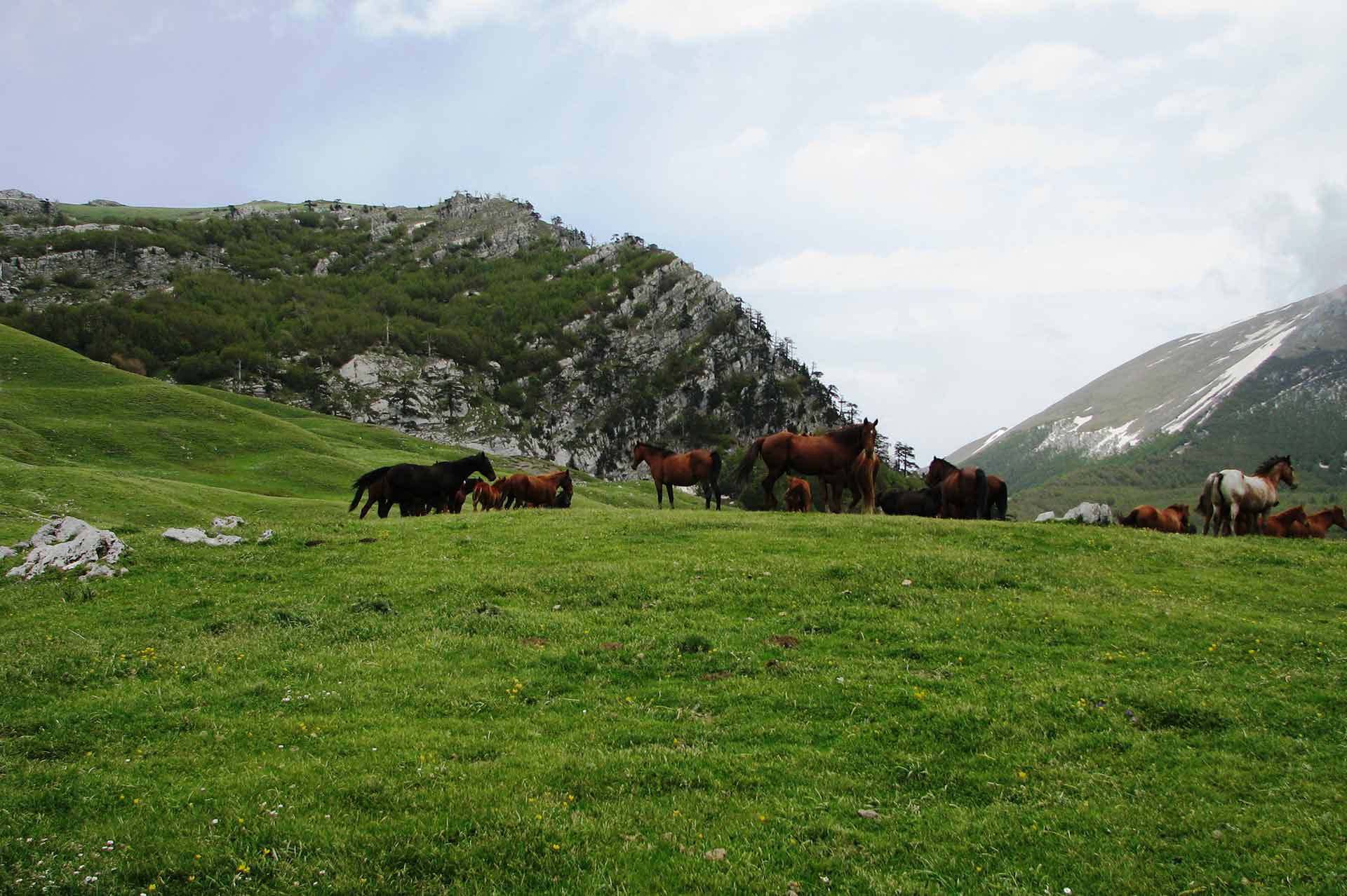 È il regno del pino loricato, l’emblema del Parco, un albero dalle forme contorte che qui vive aggrappato alla roccia nelle aree più impervie, capace di resistere alla tempeste di neve e vento.